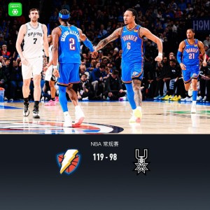 雷霆119-98复仇马刺,亚历山大34+5+5,文班17分7板